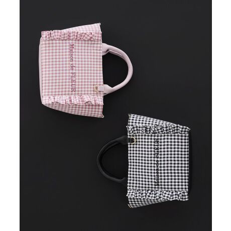 【08001533900】ギンガムブランドロゴフリルハンドルトート