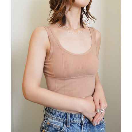 【7色/サイズ展開】カップ付きタンクトップ シームレスブラトップ リラックスインナー