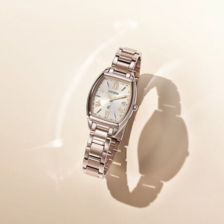 ケースとバンドをやわらかなサクラカラーで統一したトノー型モデル。「毎日着けたくなるベーシック」をテーマに、手元をやさしく彩る上品なデザインに仕上げています。