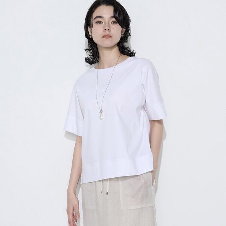 接触冷感性と汗ジミ防止機能を備えた、機能性スムース素材を使用しています。