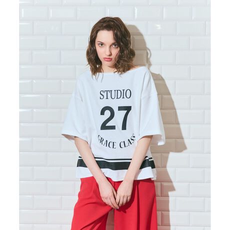 ナンバープリントループ裏毛トップ