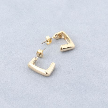 ・ミニマルで美しいシルエットが魅力の、ゴールドスクエアフープピアス