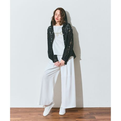 [型番:0226251010]繊細でほどよい張り感のあるコードレース地を軽く一重仕立てにしたウエストドロストデザインのフーディ。※こちらのモデル着用画像はサンプル品を撮影しております。実際の商品と仕様、加工、サイズが若干異なる場合がございます。予めご了承くださいませ。