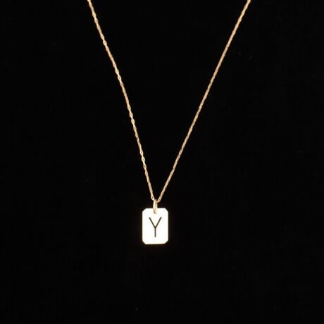 ・シンプルな美しさが際立つ、イニシャル&ナンバーのスクエアプレートネックレス。