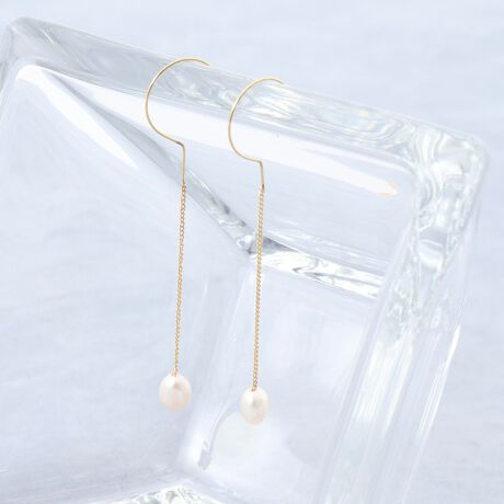 ・耳元で揺れる、一粒の輝き。淡水パール ドロップピアス