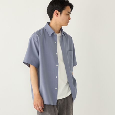 イージーケア性も魅力の合繊素材を使用したボックスシャツ。
