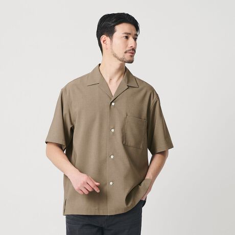 リネンライクな【Reflax(R)】生地を使用したオープンカラーシャツ