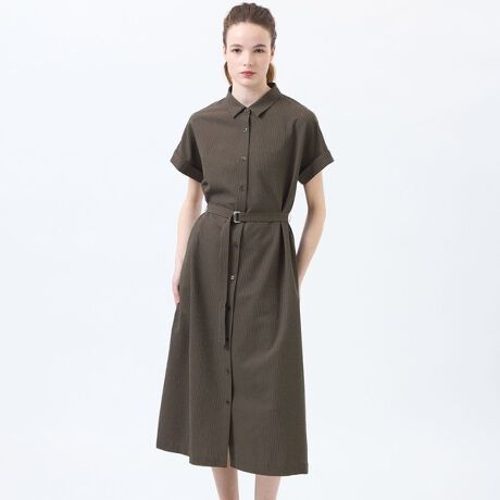 <清涼感たっぷりなサマーサッカー素材のシャツワンピース>