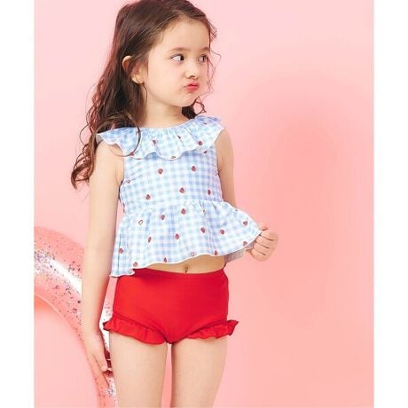存在感のある大きなフリルが、目をひくセパレート水着。