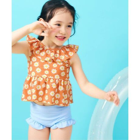 存在感のある大きなフリルが、目をひくセパレート水着。