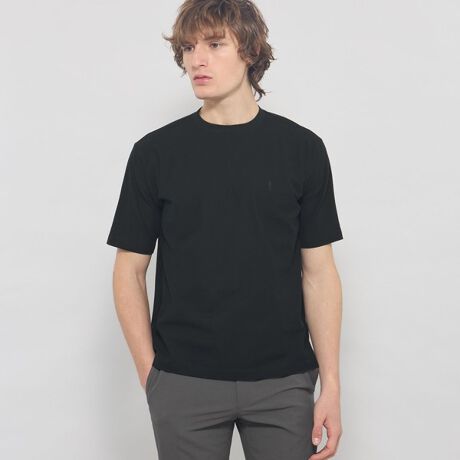 ブライトンポロと同じハニカム素材を使用した衿リブTシャツです。衿リブを表地と同じ糸でしっかりと厚みを持たせて編み立てており、通常のTシャツよりも上品な佇まいに仕上げています。肌離れの良い軽やかな素材でありながら、きれい目に着れる他にはない大人のTシャツです。