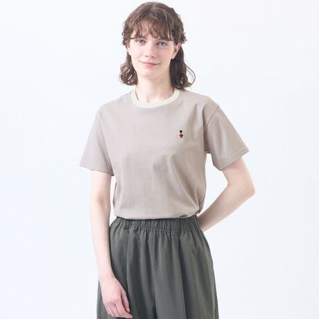 襟元のバイカラーがワンポイントのベーシックな半袖Tシャツ。