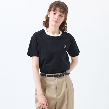 襟元のバイカラーがワンポイントのベーシックな半袖Tシャツ。