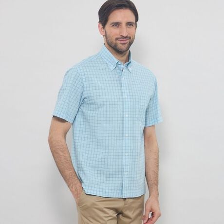涼し気でリラックスムード満載なシアサッカーはナチュラルな皺感が特徴です。ポリエステルを交編することでより薄く、軽くサラッとした風合いに生地に仕上げています。アイロンを使用せず、洗いざらしで雰囲気良くご着用頂けます。美しい色目にペーンで格子柄を切った新柄はカジュアルにもきれい目にも合わせやすく万能なアイテムです。