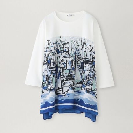 【L】【接触冷感・ウォッシャブル】ヨットハーバープリントコンビカットソー