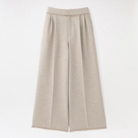 落ち感のあるワイドシルエットに、センターのクリースラインが縦のラインを美しく際立たせ、リラックス感がありながらもすっきりとした印象に。