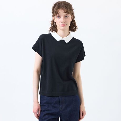 <バイカラー襟がポイントのニットポロ>