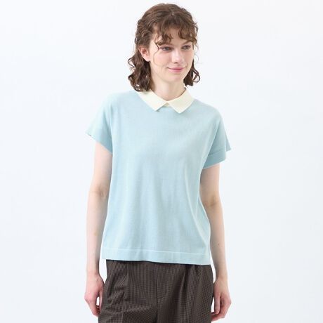 きちんと感のあるバイカラー襟のニットプルオーバー。
