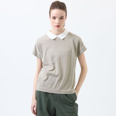 きちんと感のあるバイカラー襟のニットプルオーバー。