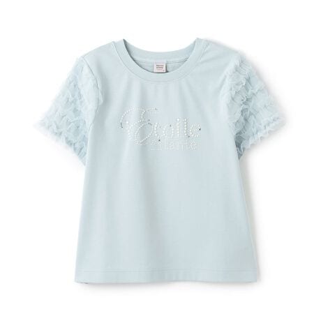 チュールフリルをあしらった袖のデザインが魅力的なTシャツです。