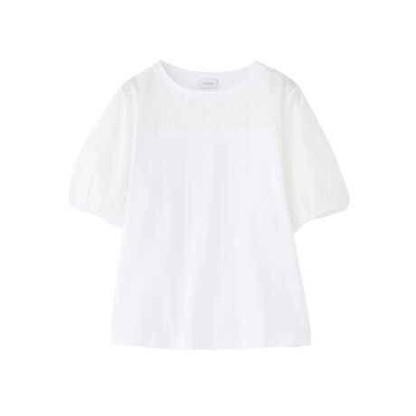 エンブロイダリーレースとキレイ目ジャージを組み合わせたレースコンビカットソー。