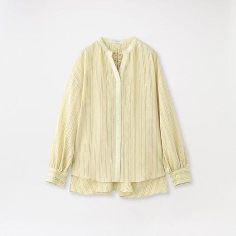 ソフトでドレープのきれいなレーヨンに、麻をブレンドしてほどよいハリ感を加えたストライプ素材です。