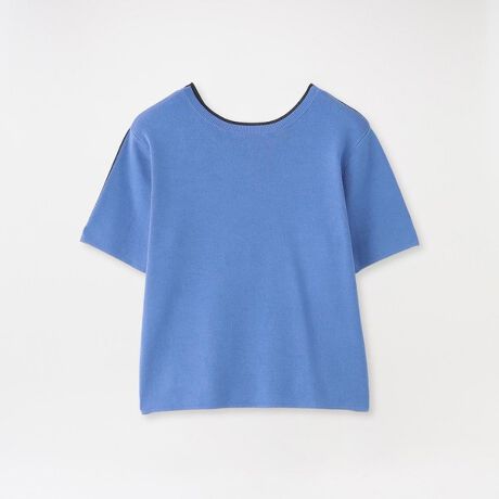 ラウンドネック端には配色ラインを施し、さりげないアクセントをプラス。