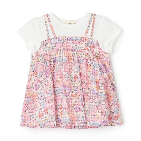 リバティファブリックス「ベッツィチェック」のキャミソールを重ねたようなドッキングチュニックです。