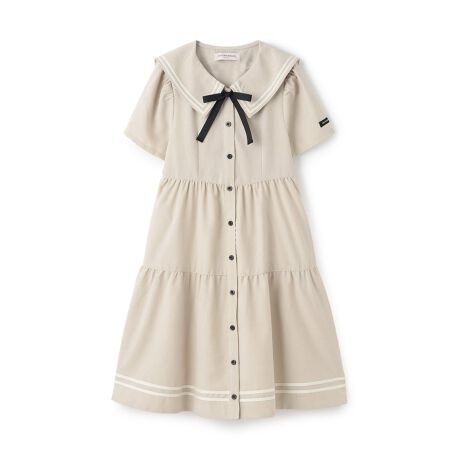 上品かつさわやかな印象のコーディネートが完成するセーラーワンピースです。ゆったりと広がる女の子らしいティアードデザイン。胸元のリボンはボタンで簡単につけ外しできます。ハンカチなどの持ち運びに便利なスリットポケットを備えているのも魅力です。【おすすめの着用時期は春夏シーズン】