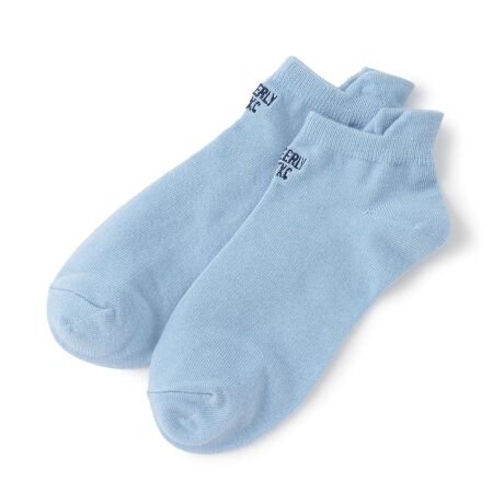 デイリー使いに重宝する彩り豊かな5色展開のソックスです。無地にほどこしたロゴ刺しゅうがさりげないアクセント。足首の見えるスニーカー丈なので、足元がすっきりとした印象に仕上がります。かかとのタブで靴擦れを防ぎ、脱げにくいのもうれしいポイントです。