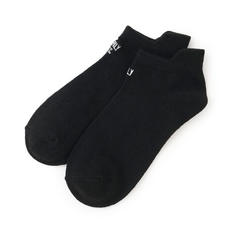 デイリー使いに重宝する彩り豊かな5色展開のソックスです。無地にほどこしたロゴ刺しゅうがさりげないアクセント。足首の見えるスニーカー丈なので、足元がすっきりとした印象に仕上がります。かかとのタブで靴擦れを防ぎ、脱げにくいのもうれしいポイントです。