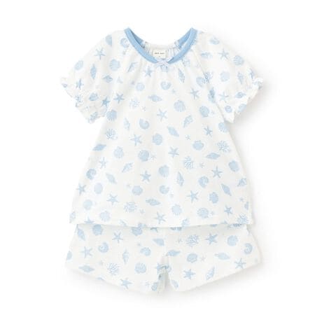 可愛らしいモチーフの総柄にミニリボンをあしらったパジャマです。お好みに合わせて選べる、テイストの異なる3パターン展開。本体にコットン素材を使用した、やわらかく肌当たりの良い着心地が魅力です。後ろ衿ぐりやパンツのウエストはゴム仕様になっており、お着替えをスムーズに行えます。内側にお名前を記入できるタグつき。