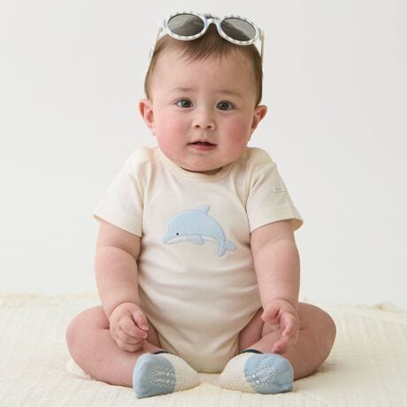 かわいい海の生き物をアップリケであしらったロンパースです。