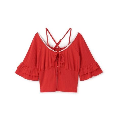 キャミソールとカーディガンが一体化したようなデザインで、一枚でレイヤードスタイルが完成します。