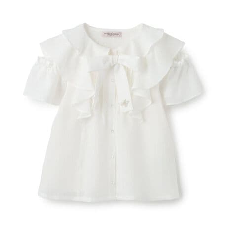 女の子らしいフリル使いのブラウスとシンプルなキャミソールのセットです。袖はボタンで開閉できる2WAY仕様になっています。胸元のリボンもつけ外し可能で、お好みに合わせて雰囲気を変えられるのも魅力。触れた時に冷たく感じる接触冷感の素材を使用しました。