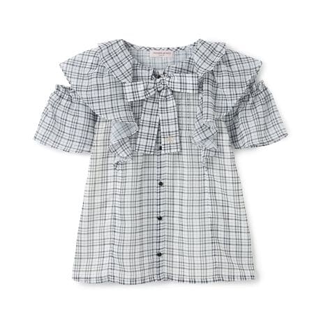 女の子らしいフリル使いのブラウスとシンプルなキャミソールのセットです。袖はボタンで開閉できる2WAY仕様になっています。胸元のリボンもつけ外し可能で、お好みに合わせて雰囲気を変えられるのも魅力。触れた時に冷たく感じる接触冷感の素材を使用しました。