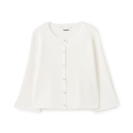 スタイリングに軽やかな印象を与える透かし編みの7分袖カーディガンです。