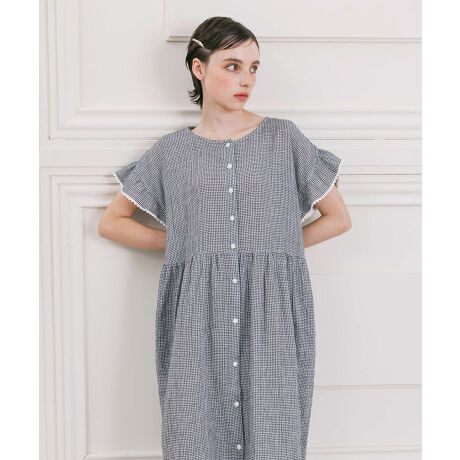 フリル先にあしらった白いコットンのトリミングレースで爽やかな清潔感のある1着。