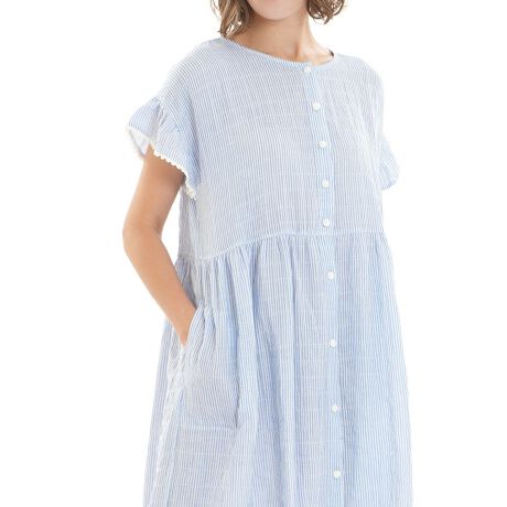フリル先にあしらった白いコットンのトリミングレースで爽やかな清潔感のある1着。