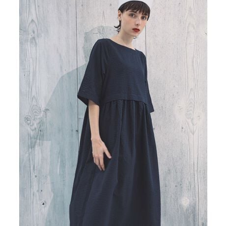 ボートネックですっきりとした印象に仕上げたルームワンピース。