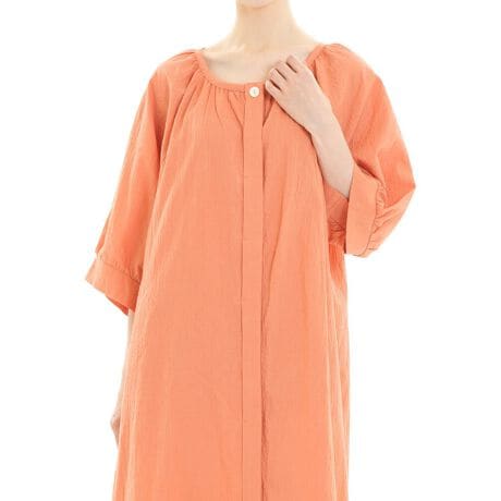 ブラウス感覚で着られるきれいめなワンピースは、ワンマイルウェアとしても活躍。