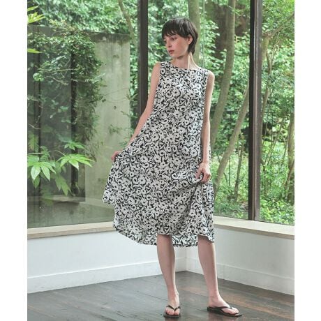 リラクシーなAラインシルエットのノースリーブワンピース。