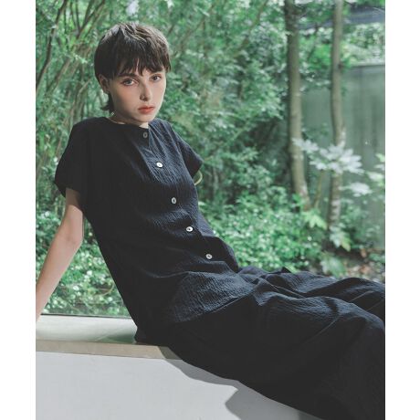 シャーリング加工を施すことで自然なシワ感をプラスし、ベタつかないエアリーな着心地に。