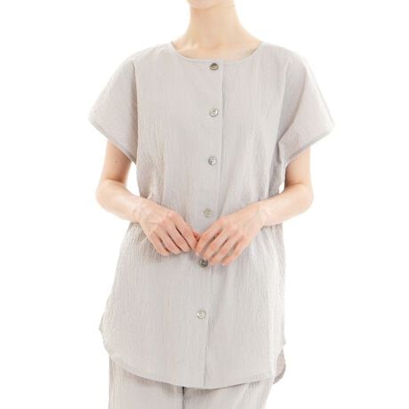 シャーリング加工を施すことで自然なシワ感をプラスし、ベタつかないエアリーな着心地に。