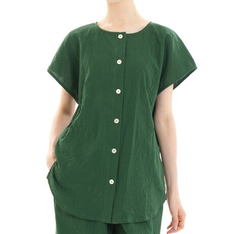シャーリング加工を施すことで自然なシワ感をプラスし、ベタつかないエアリーな着心地に。