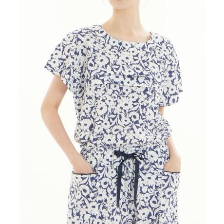 シャーリング加工を施すことで自然なシワ感をプラスし、ベタつかないエアリーな着心地に。