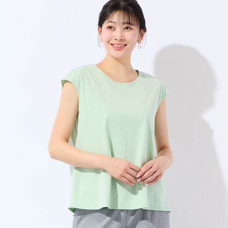 ◆さり気ない煌めきを添えるラインストーン付きトップス◆