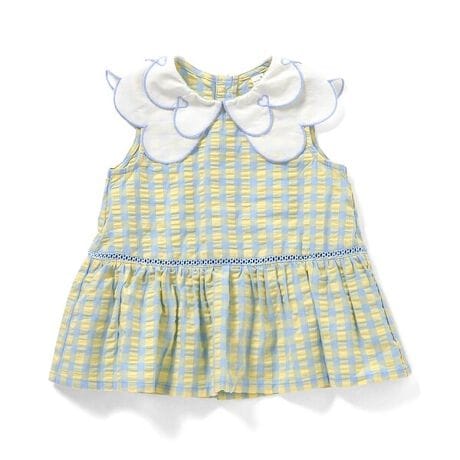 apres les cours(アプレレクール)のシャツ・ブラウス「カラーストライプ・ギンガムスカラップハート衿チュニック」は、ナチュラルなスタイルにさりげなくデザインをプラスしたおしゃれアイテム*