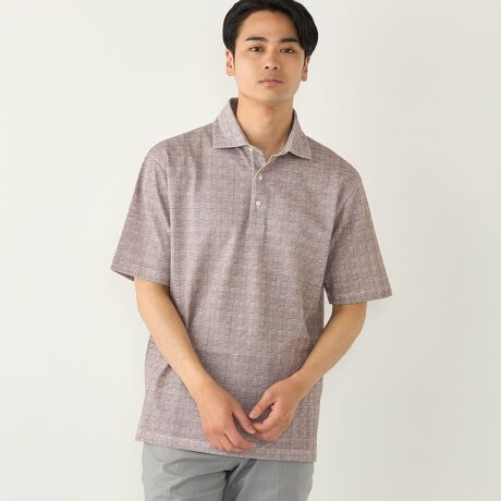 オンオフ兼用で使いやすい、全面にプリントを施したポロシャツ。