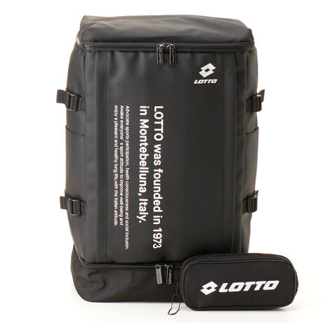 [型番:72131]スポーツブランド<ロット>のスタイリッシュなデザインで人気の2層ボックス型リュック。素材のコンビネーションの丈夫な本体素材に背面には通気性の高いメッシュ素材を使用しています。さらに、ロゴがプリントされたペンケースが付属しており、通学や普段使いで必要な筆記用具をスマートに持ち運べます。B4サイズ対応でPC収納も可能。さらに2層仕様でお弁当やシューズなど分けて収納も。学生向けにデザインされたリュックです。